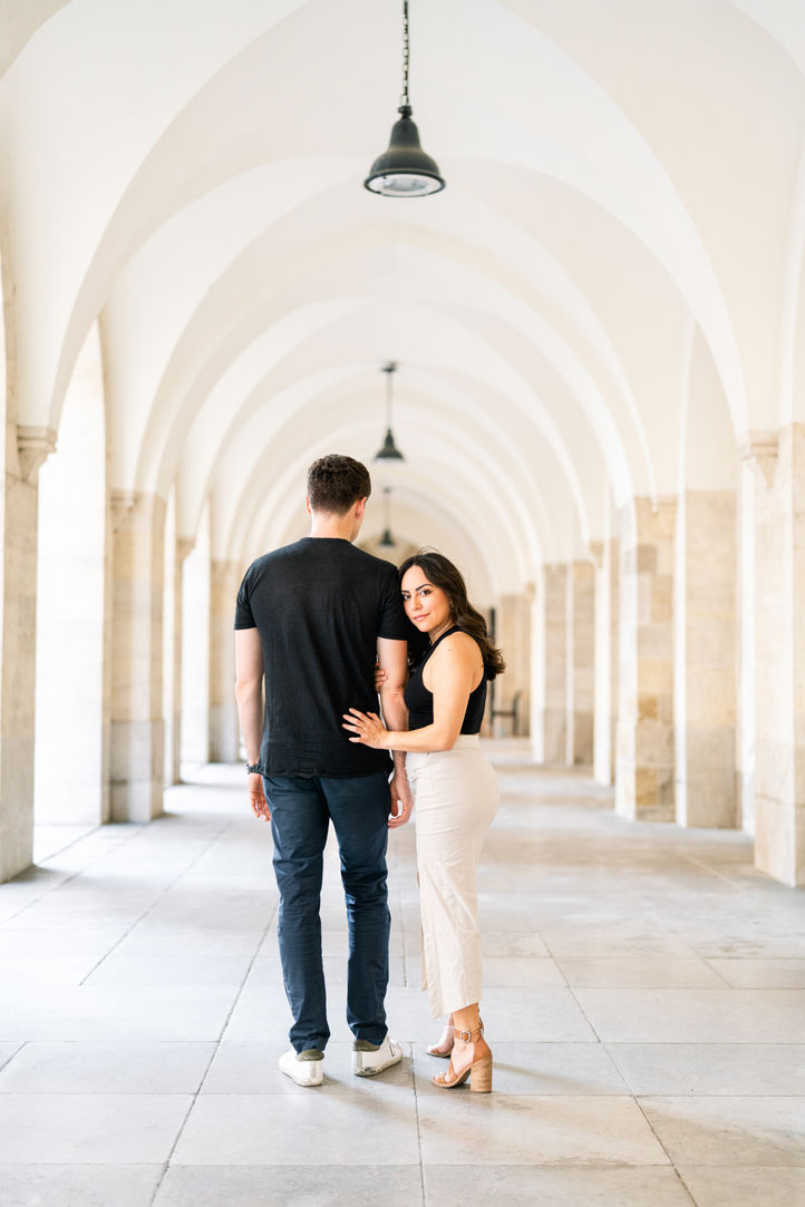 Lily and Michael live just steps away from the center and it shows. The places we wandered through weren’t new to them, so they didn't treat the photos like a big event. They were just being themselves. Michael is the quiet type, camera-shy in the sweetest way. But we saw how easily he made Lily laugh, even when she tried to keep a straight face. So when the joy spilled over, we were there to catch it.
